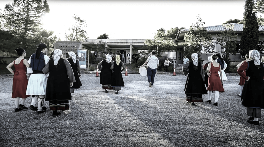 Οµάδα φοιτητών από το Α΄ και Β΄ έτος του Τµήµατος Θεατρικών Σπουδών, από το εργαστηριακό µάθηµα: «Χορολογία στον χορό και το θέατρο», µε παραδοσιακές φορεσιές και µουσικά όργανα, επιτελούν µια σύντοµη επιτόπια (site specific) µουσικοχορευτική δράση, βασισµένη στο πνεύµα του θεατρικού έργου «Η Γκόλφω» του Σπυρίδωνος Περεσιάδη.