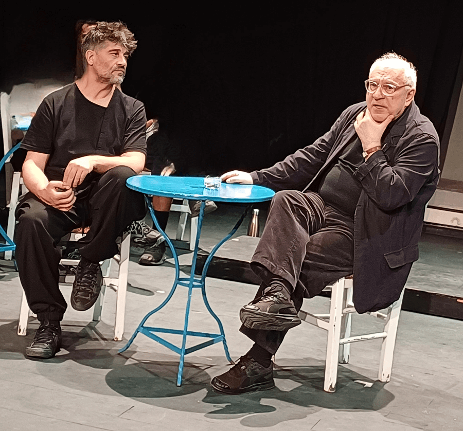 Μετά το πέρας της παράστασης του έργου «Πανελλήνιον», ακολουθεί διάλογος µεταξύ του θεατρικού συγγραφέα Δηµήτρη Δηµητριάδη και του Σίµου Κακάλα, που προσεγγίζει σκηνοθετικά το κείµενο. Οι σπουδαστές της Δραµατικής Σχολής ΔΗΛΟΣ που το παρουσιάζουν επί σκηνής στη µορφή του θεατρικού αναλογίου, υπό τη σκηνοθετική καθοδήγηση του δασκάλου τους, λαμβάνουν ενεργά µέρος στη διαδικασία που εξελίσσεται σε µια ουσιαστική συζήτηση περί των µεθόδων προσέγγισης, µελέτης, κατανόησης των θεατρικών κειµένων και τη διαδικασία µετατροπής τους σε σκηνική δράση.